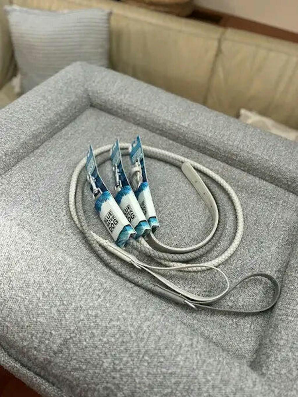- The Bluewater Dog Leash is designed with a strong webbing core and SiLeather® exterior making it water resistant, odor resistant, and safe from the elements. The hardware is made from a rust-resistant anodized aluminum, which is strong and lightweight so you can use it for a long time. That said, all products need to be cared for and rinsed in fresh water after exposure to the elements and marine environments.